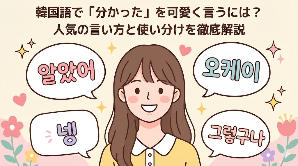 この記事では、韓国語の「分かった(알았어)」の基本から、可愛く聞こえる「알았쪄(アラッチョ)」や「알았어요용(アラッソヨヨン)」まで、シーン別に分かりやすく解説します。